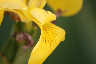 Iris pseudacorus, lliri groc, viu a les vores del nostre riu fent una llavor molt important, com la de mantenir el caixer amb les seues tiges subterrànies i rizomes, és abundant a les sequies de la marjal, on els llauradors els planten, no ho es pas al nostre poble, on guaita amb vergonya entre canyes i senillars, sempre viu a primera línia. El coneixerem per les fulles linears llargues de color verd inclús a l'hivern, on és fàcil de reconéixer-lo entre la vegetació seca dels senillars. No hi ha cap flor com la del lliri a vora riu, amb un groc intens i nervis porprats als seus pètals.